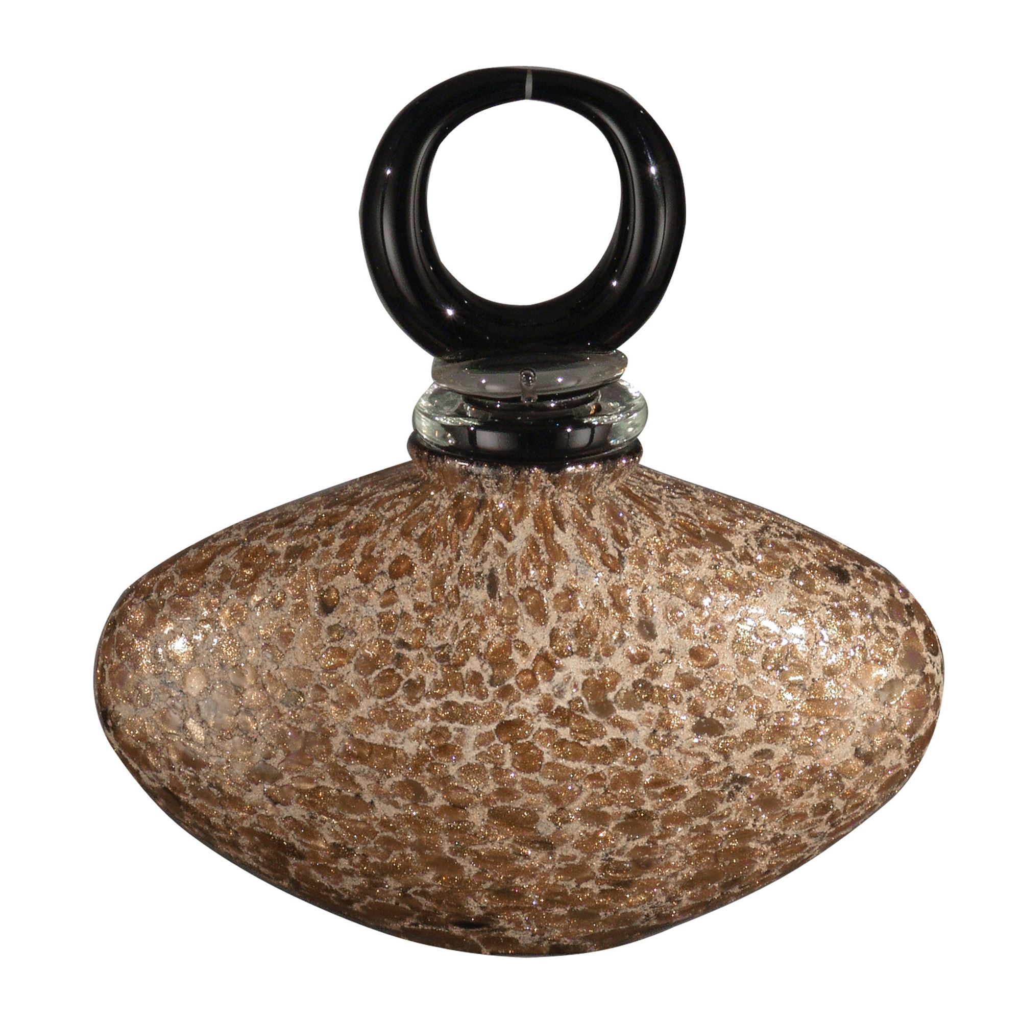 Brown, cream, light and dark amber tones are swirled together to make the lovely marble pattern in our Capricorn Series. The homey earth tones ensure that this perfume bottle will fit well with any decor. The dramatic style ensures that it will become the showpiece in whatever room you chose to display it. A perfect gift for the fragrance lover who also appreciates fine art, this is a stunning piece on a dresser or vanity table. 9 W x 9.5 H.
